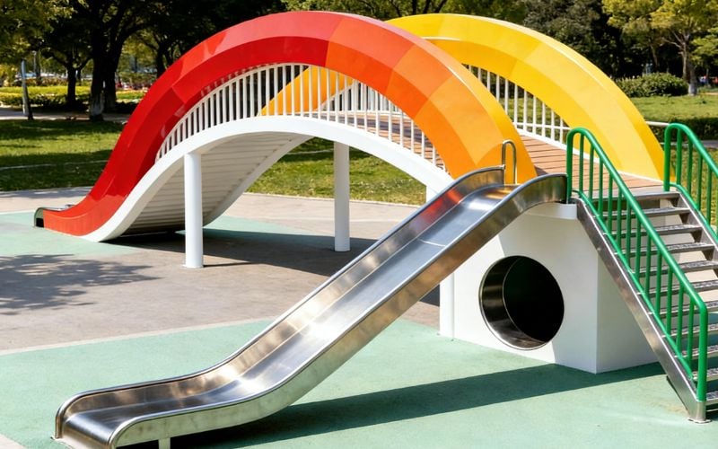 - The plastic components (slides, panels, climbers): High-density polyethylene (HDPE), rotationally molded, is the industry standard for durability. Ensure it has UV inhibitors to prevent fading and cracking from sun exposure.